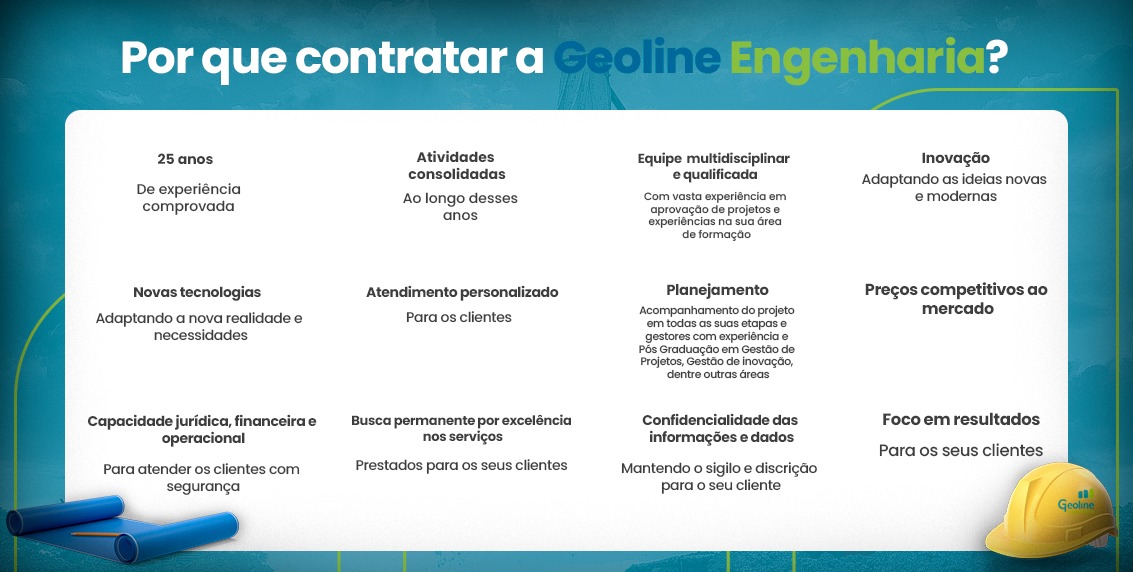 A Geoline Engenharia é uma empresa com 26 anos de mercado que se adaptou a distintos cenários – econômico, políticos e técnicos – nos dando know-how para entender as necessidades de nossos clientes e apresentá-los soluções integradas para o desafio de seus projetos visando sempre a inovação e tecnologias de ponta.